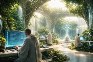 Є уява про монастир як про місце, де час не квапиться, де світанок починається не з нотифікації, а з дзвону, а людський голос звучить рідше, ніж вітер у кронах. Є уява про код як про інше царство: холодне, точне, вимогливе, збудоване з логіки, помилок, виправлень і нескінченних спроб змусити машину робити саме те, що ти хотів, а не те, що випадково написав. Але в певний момент ці дві уяви починають накладатися одна на одну, як старі прозорі креслення, і з цього накладання народжується постать монаха-кодера.
