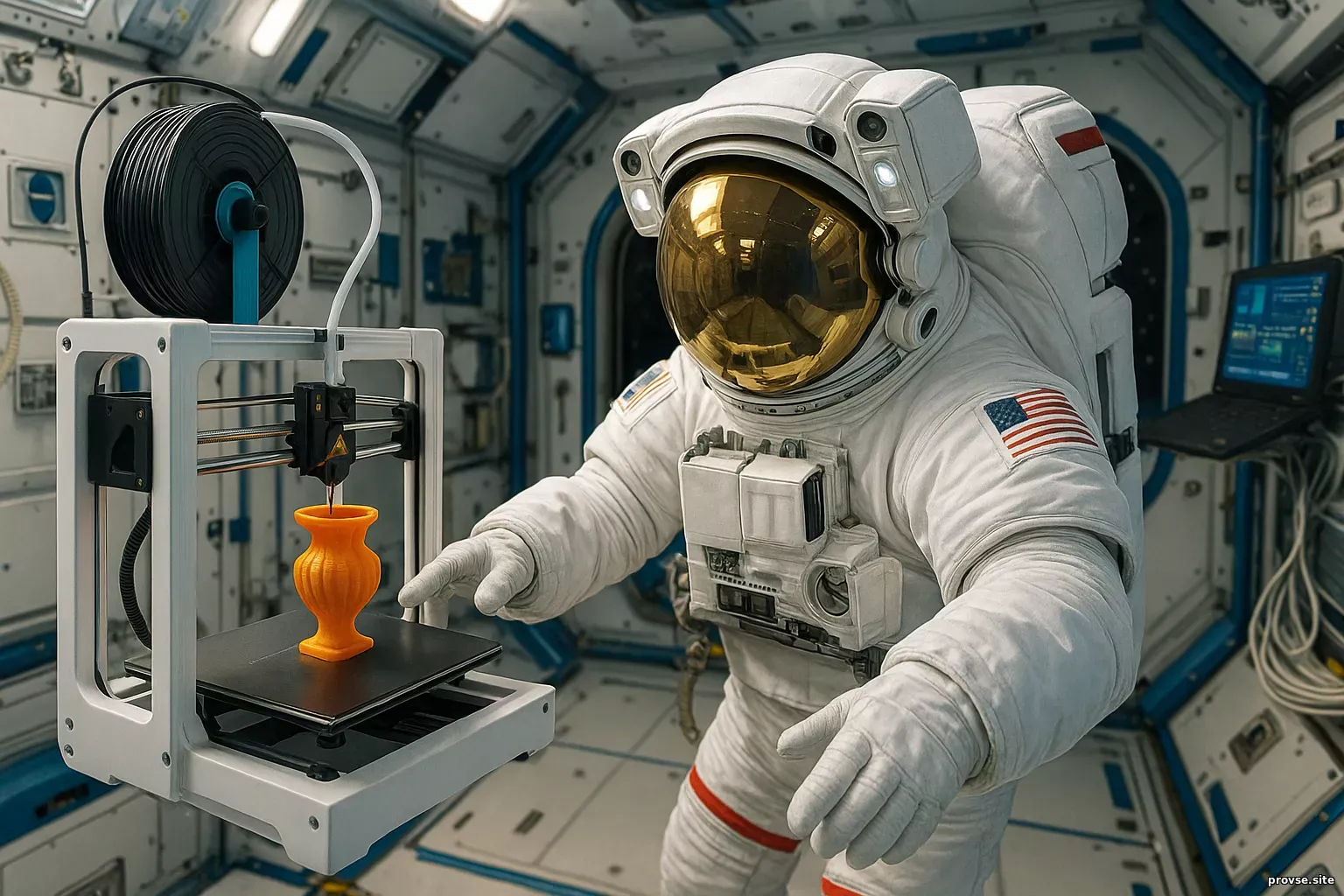 Ключевые эксперименты1. Первый 3D-принтер на МКСВ 2014 году на Международной космической станции появился первый 3D-принтер, разработанный компанией Made In Space. Эксперимент показал: напечатанные детали почти не уступают земным аналогам. Это стало отправной точкой. 2. Металлы и композитыПозднее начались эксперименты с более сложными материалами. Печать металлом в невесомости открыла возможность производить прочные инструменты, элементы конструкций и даже части двигателей. 3. БиопечатьОдно из самых смелых направлений — печать тканей и органов. В условиях невесомости клетки распределяются иначе, что позволяет создавать более сложные структуры. В будущем это может стать ключом к медицине космонавтов. 4. Космическая фабрикаСегодня рассматриваются проекты орбитальных производственных комплексов, где 3D-принтеры работают непрерывно, создавая детали для спутников или станции без участия человека. Эстетика технологииЕсть особая красота в том, как 3D-принтер медленно выводит форму в космосе. Там, где всё вокруг подвластно вакууму и холоду, рождается маленький предмет, созданный руками и умом человека. Это не просто технический акт, а символ победы над ограничениями. Каждый слой — это шаг в сторону независимости человечества от земных привязок. В этой медленной, почти ритуальной работе виден будущий ритм космических колоний, где фабрики будут печатать стены, купола, инструменты, одежду. Этические и философские вопросы3D-печать в невесомости порождает и новые дилеммы.