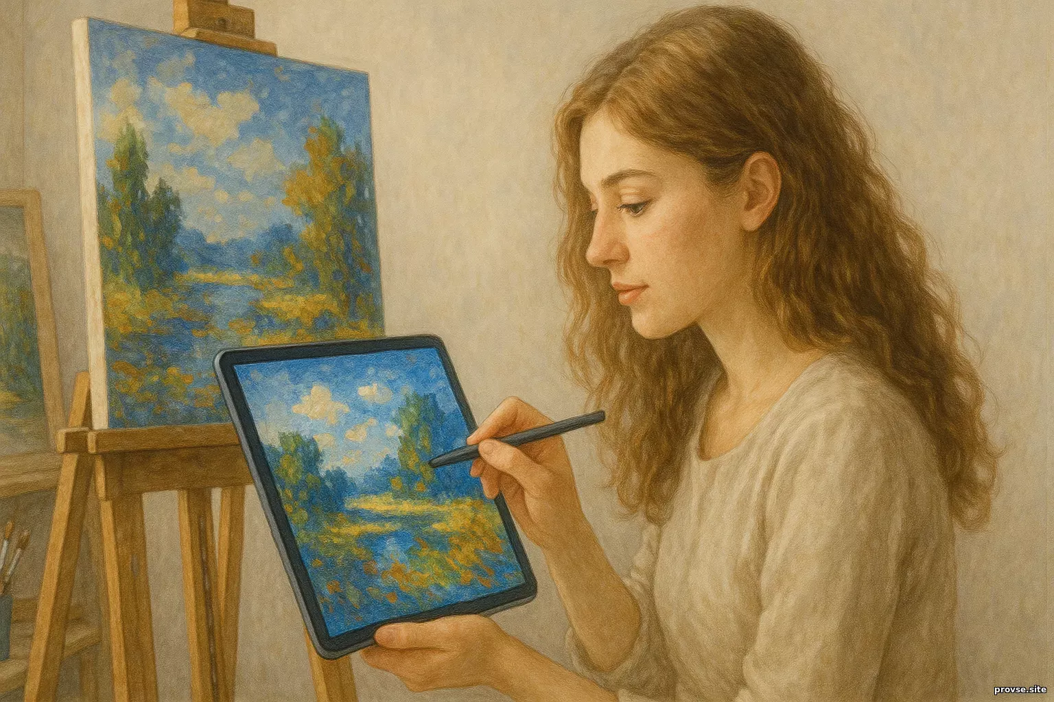 В 2000-х цифровая живопись вышла из тени: её стали использовать иллюстраторы, дизайнеры, концепт-художники, а затем и классические живописцы. Сегодня она — самостоятельное направление, со своими звёздами, школами и шедеврами. Что даёт цифровая среда художнику1. Безграничная палитраВ цифровом пространстве нет ограничений по цветам, материалам, техникам. Один художник может за вечер перейти от акварели к пастели, от масла к туши — просто переключив кисть. 2. Отмена страха ошибкиОтмена страха — ключевой момент. В цифровой живописи всегда есть "Undo". Художник может экспериментировать смело, не боясь испортить работу. Это рождает смелые стили, неожиданные композиции, дерзкие линии. 3. Возможность корректировкиСлои, маски, прозрачности позволяют возвращаться к работе, менять детали, перестраивать композицию даже спустя месяцы. Это гибкость, которой нет в традиционном искусстве. 4. Мобильность и скоростьХудожник может творить где угодно — на планшете в парке, на ноутбуке в путешествии, даже на телефоне. Это революция в самом процессе творчества. 5. Возможность анимации и интерактивностиЦифровая живопись не обязана быть статичной. Её можно анимировать, оживить, превратить в движущуюся картину, мультимедийный объект, часть игры или VR-инсталляции. Кому и зачем это нужно1. Художникам-экспериментаторамЦифровая среда открывает новые горизонты форм и смыслов. Здесь можно выйти за рамки традиционного: нарушить законы перспективы, вмешаться в реальность, смешать визуальное и звуковое. 2. Иллюстраторам и дизайнерамКоммерческое искусство — книги, обложки, плакаты, интерфейсы — всё чаще рождается в цифре. Это оперативно, удобно, удобно редактируемо. 3. Ученикам и самоучкамЦифровая живопись демократична. Чтобы начать, не нужно покупать холсты, краски, мольберт. Достаточно планшета и приложения. Это делает искусство доступным тысячам талантов, у которых раньше не было возможности. 4. Игровым и киноиндустриямЦифровые художники создают миры, персонажей, атмосферы. От фэнтези до киберпанка — всё это сначала рождается как цифровая живопись. Страхи и критика1. «Это не настоящее искусство»Критики утверждают, что отсутствие физического следа — мазка, фактуры, запаха — делает цифровую живопись механической и бездушной. Что искусство должно быть материальным, вещественным. Но разве суть картины — в холсте? Или всё-таки в замысле, в эмоции, в результате? 2. «Цифра обесценивает труд»Нажать «Undo» — не значит не потрудиться. Современный цифровой художник осваивает сложные программы, стили, работает часами, как и его предшественники с кистью. Просто его палитра — виртуальна. 3. «Нейросети отнимут работу»Сегодня ИИ может сгенерировать изображение за секунды. Но искусство — не просто визуальный объект. Это выражение замысла, интуиции, опыта, смысла. Машина может имитировать стиль, но не может почувствовать момент. Настоящее искусство не копируют — его проживают. Известные имена и школыLoish (Lois van Baarle)Нидерландская художница, одна из самых популярных цифровых иллюстраторов. Её работы узнаваемы по мягкому свету, женственным персонажам, эмоциональной цветовой палитре. Feng ZhuКонцепт-дизайнер, основатель школы в Сингапуре. Его студенты создают миры для кино и игр, начиная с простых цифровых зарисовок. Дмитрий Клюшкин (Россия)Один из пионеров цифровой живописи в р