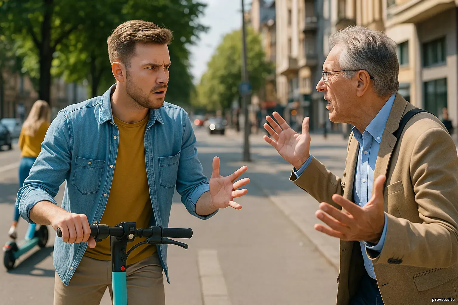 Город стал хаотичнее, агрессивнее, непредсказуемее. И это ощущает каждый, кто хотя бы раз отскочил в сторону от молчаливого приближения 20-килограммовой машины на скорости 25 км/ч. Где рождаются конфликты1. Самокат и пешеходГлавный конфликт — за тротуар. Пешеход считает его своей зоной. Самокат — тоже. И если велосипед ещё вызывает уважение (или хотя бы страх), то электросамокат воспринимается как агрессивный нарушитель спокойствия. Причина конфликта — отсутствие четких границ. Многие города не определили, где можно ездить, а где нельзя. Люди катаются как хотят — и это создаёт постоянную тревожность для пешеходов. 2. Самокат и автомобильНа дороге самокат — ничтожен. Он не защищен. Он тихий, не имеет номерного знака, не всегда предсказуем. Автомобилисты видят в нём помеху, угрозу, непредсказуемый элемент. В результате — аварии, взаимные обвинения, и очередное напряжение в и без того насыщенном дорожном движении. 3. Самокат и городской ландшафтСамокаты часто оставляют где попало. Это раздражает всех: