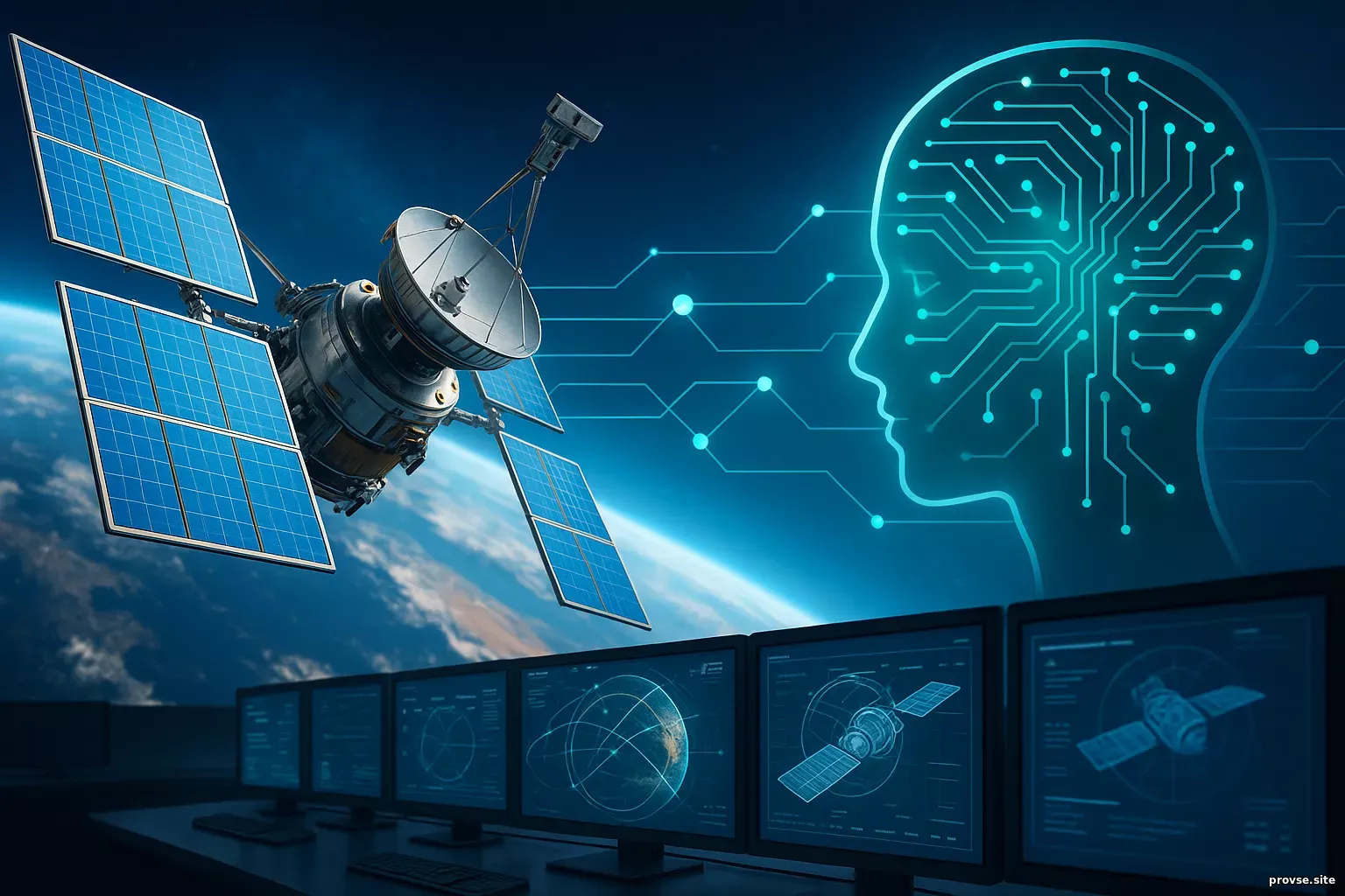 ИИ в управлении спутниками: новая орбита мышленияПролог: когда небо становится разумнымНебо больше не принадлежит только птицам и звёздам. Сегодня это пространство, насыщенное тонкими сигналами, траекториями, вспышками информации. Сотни, тысячи спутников — словно электронные клетки в нервной системе планеты — движутся по орбитам, передают данные, следят, прогнозируют, соединяют. Но кто управляет этим небесным роем? И как сделать так, чтобы каждый спутник знал своё место, не сбился с курса и приносил максимум пользы? На помощь приходит искусственный интеллект. Он больше не ограничен анализом фотографий с орбиты. Он становится частью самого управления, стратегом, диспетчером и корректором в одной цифровой сущности. Искусственный интеллект теперь не просто наблюдает за Землёй — он руководит теми, кто это делает. Что происходит на орбите: спутниковый бумВсего несколько десятилетий назад запустить спутник могли только государства с огромными бюджетами и научными лабораториями. Сегодня это делают частные компании, университеты и даже школьные команды. Космос стал коммерческим и доступным. Так появилось явление, которое специалисты называют «орбитальное перенаселение». Количество спутников растёт экспоненциально. Компании вроде SpaceX, OneWeb и Amazon создают созвездия из тысяч аппаратов, чтобы обеспечить Землю глобальным интернетом, связью, навигацией, мониторингом климата. Каждый спутник — это автономный механизм, но в плотной орбитальной среде координация становится критически важной. Ошибка в управлении может привести не только к столкновению, но и к образованию космического мусора, который угрожает всей инфраструктуре на орбите. Почему спутникам нужен ИИТрадиционное управление спутниками основано на командах с Земли. Центры управления отслеживают орбиты, корректируют траектории, анализируют данные, реагируют на сбои. Но при тысячах спутников такой подход перестаёт быть масштабируемым. Искусственный интеллект предлагает совершенно новый уровень: