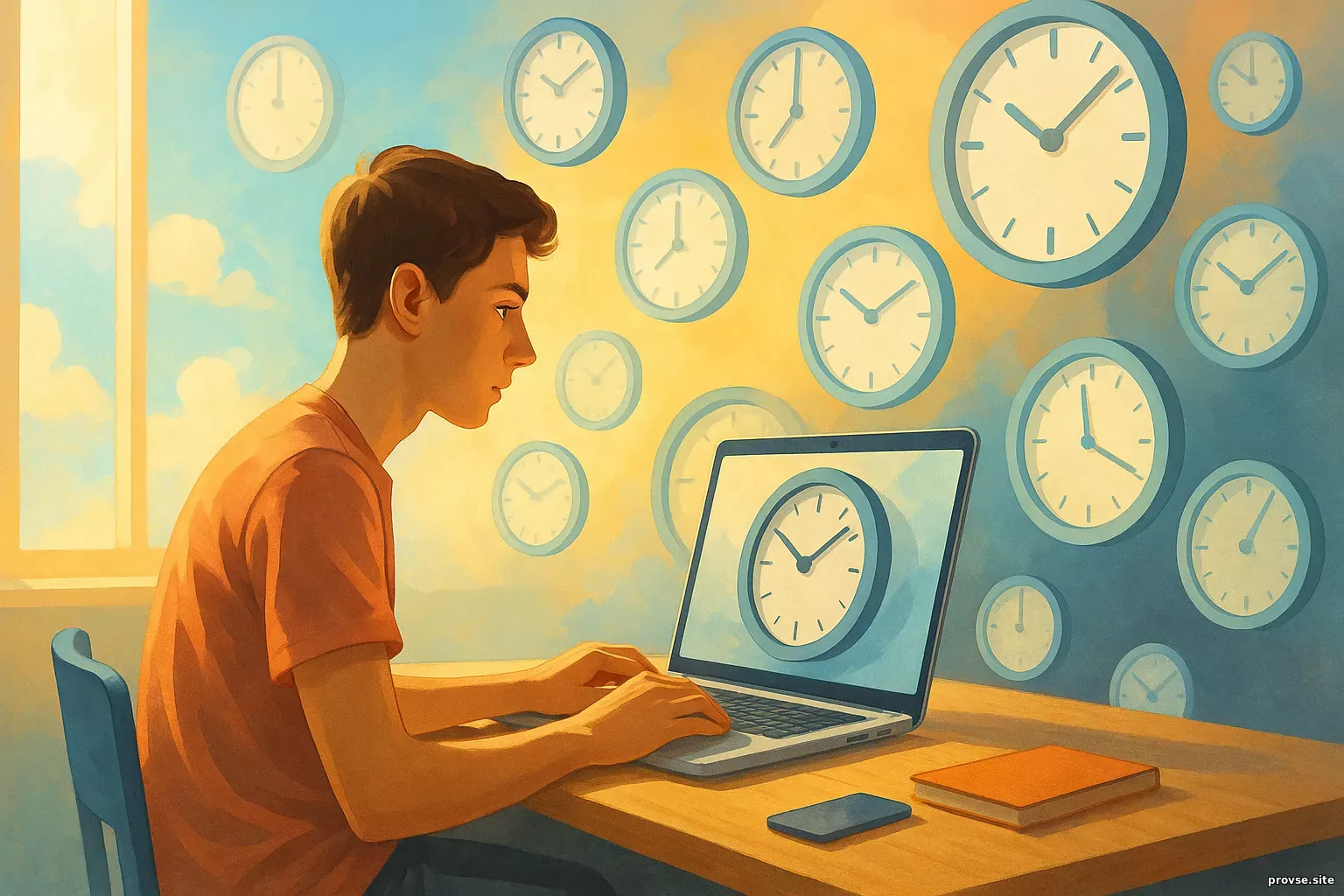 Как меняется восприятие времени онлайн: между вечным сейчас и потерянным будущимПролог: секунды, которые сгорают в лентеОткрываешь телефон — и вот ты уже в TikTok, в новостях, в чате, в календаре, в ленте чужих дней. Прошло пять минут? Полчаса? Полдня? В онлайн-пространстве время перестаёт быть линейным. Оно распадается на клипы, сторис, уведомления, бесконечные потоки — и мы, словно в капле, видим весь океан, не различая берегов. Что происходит с восприятием времени в цифровую эпоху? Почему день в Zoom ощущается, как вечность, а ночь на YouTube — как миг? Почему нам кажется, что ничего не успеваем — при том, что постоянно что-то делаем? И как онлайн-реальность меняет саму структуру наших ощущений? Цифровое время: мгновенное и вязкоеИнтернет сделал возможным доступ к информации, контактам, развлечениям — в один клик. Ожидание, задержка, пауза — стали почти непереносимыми. Мы живём в парадигме немедленного отклика. Написал — и ждёшь, что тебе ответят. Загрузил — и раздражаешься, если ждёшь больше трёх секунд. Но именно из-за этой скорости время перестаёт ощущаться как поток. Оно становится фрагментом. Уведомление. Пост. Рилс. Ответ в мессенджере. Каждое событие живёт само по себе — без связи с предыдущим и без смысла будущего. Как если бы календарь разбился на осколки. Экраны, ленты и «вечное сейчас»Цифровая среда устроена так, чтобы всё было одновременно доступно и актуально. Алгоритмы не заботятся о времени — они заботятся о вовлечении. Лента Instagram не скажет тебе: «Это фото старое». YouTube не напомнит, что ты уже видел это видео год назад. TikTok подсовывает ролики без даты — только реакция важна, не контекст. Так возникает эффект вечного сейчас: всё, что ты видишь, будто происходит в этот момент. Это иллюзия, но она формирует восприятие: ты всегда должен быть включён, внимателен, отзывчив. Потому что в этом «сейчас» всё случается — и ты не хочешь отстать. От планирования к присутствиюРаньше время было привязано к ритуалам: завтрак, дорога на работу, обеденный перерыв, вечерняя газета, сон. Сейчас — рабочие звонки могут быть в 21:00, сообщения приходят в 3:00, фильмы смотрят за завтраком, работу делают в поезде, учеба происходит между лайками. Границы времени стираются. И с этим — исчезает само чувство ритма. День перестаёт быть «днём», ночь — «ночью». Есть только чередование активностей. Присутствие заменяет план: не важно, когда ты это сделаешь — главное, что ты «на связи». Но у этого нового режима есть издержки: всё важное становится срочным, всё срочное — бесконечным. Почему мы больше не успеваемС цифровым ускорением парадоксально пришло ощущение нехватки времени. Хотя казалось бы — технологии экономят его. Мы тратим меньше на дорогу, на покупки, на получение информации. Но вместо освобождённого времени — приходит новая нагрузка. Это связано с несколькими явлениями: