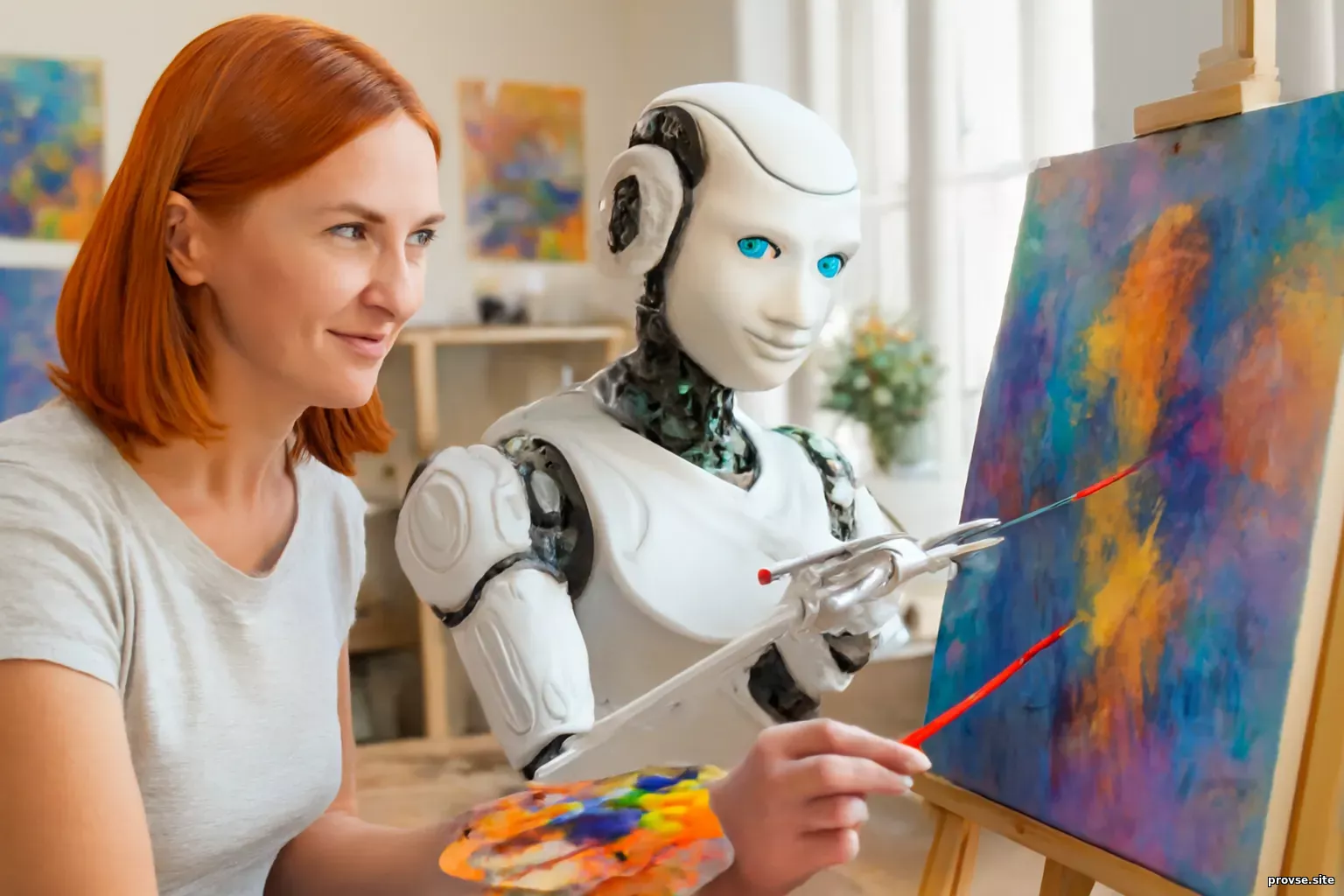 При этом машина не «понимает» искусство в человеческом смысле — она оперирует статистическими связями. Но эти связи могут дать неожиданные и вдохновляющие результаты, которых художник, возможно, не нашёл бы самостоятельно. Сильные стороны творческого союза1. Скорость и масштабНейросеть способна за считаные секунды предложить сотни вариантов композиции или цветовой схемы, что экономит время и открывает поле для экспериментов. 2. Неожиданные решенияАлгоритм не ограничен логикой человеческого опыта. Он может соединить несочетаемое и предложить нестандартные комбинации. 3. Интерактивный поиск стиляХудожник может в реальном времени тестировать разные визуальные подходы, а нейросеть будет мгновенно подстраиваться под изменения. Вызовы и противоречияАвторствоКому принадлежит работа, если алгоритм внёс существенный вклад? Юридические и этические споры по этому вопросу только начинаются. ОригинальностьЕсли нейросеть обучалась на чужих работах, насколько оригинальным можно считать её результат? Опасность зависимостиЕсть риск, что художник станет полагаться на алгоритм настолько, что его собственный творческий навык будет снижаться. Этические рамкиИспользование стиля живущих художников без их согласия вызывает бурные дискуссии. Практика соавторства: как это выглядитВ мастерской художника, работающего с нейросетью, процесс может выглядеть так: Иногда всё начинается наоборот: художник «подсматривает» идеи у нейросети, а затем переносит их на холст, используя традиционные материалы. Психология творческого дуэтаСоавторство с машиной требует от художника новой позиции — он перестаёт быть единственным источником идей и становится куратором творческого потока. Это может вызывать как восторг, так и тревогу. С одной стороны, нейросеть расширяет воображение, снимает барьеры и вдохновляет. С другой — встаёт вопрос: кто управляет процессом, если алгоритм способен предлагать более яркие решения, чем автор? Примеры применения в разных сферах искусства