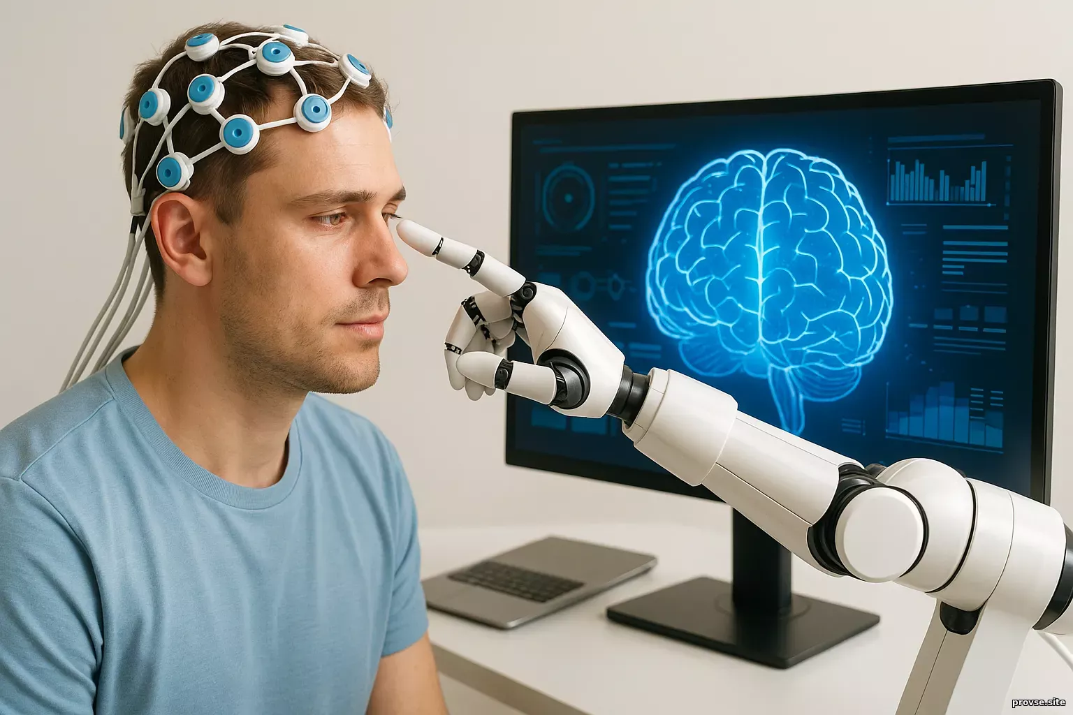 Как работают нейроинтерфейсы?Основу нейроинтерфейса составляет считывание нейронной активности — сигналов, возникающих при работе мозга. Эти сигналы улавливаются сенсорами, усиливаются, фильтруются и интерпретируются алгоритмами: какие мысли, команды, образы стоят за этим всплеском активности? Например, когда человек думает о движении рукой, в моторной коре возникают характерные паттерны. Машина может распознать их и передать сигнал на протез, который выполнит это движение. Некоторые интерфейсы идут дальше: они анализируют намерение, внимание, эмоции или зрительные образы. Зачем это нужно?1. Восстановление утраченных функцийНейроинтерфейсы дают шанс тем, кто утратил связь между мозгом и телом: людям с параличами, ампутациями, травмами позвоночника.