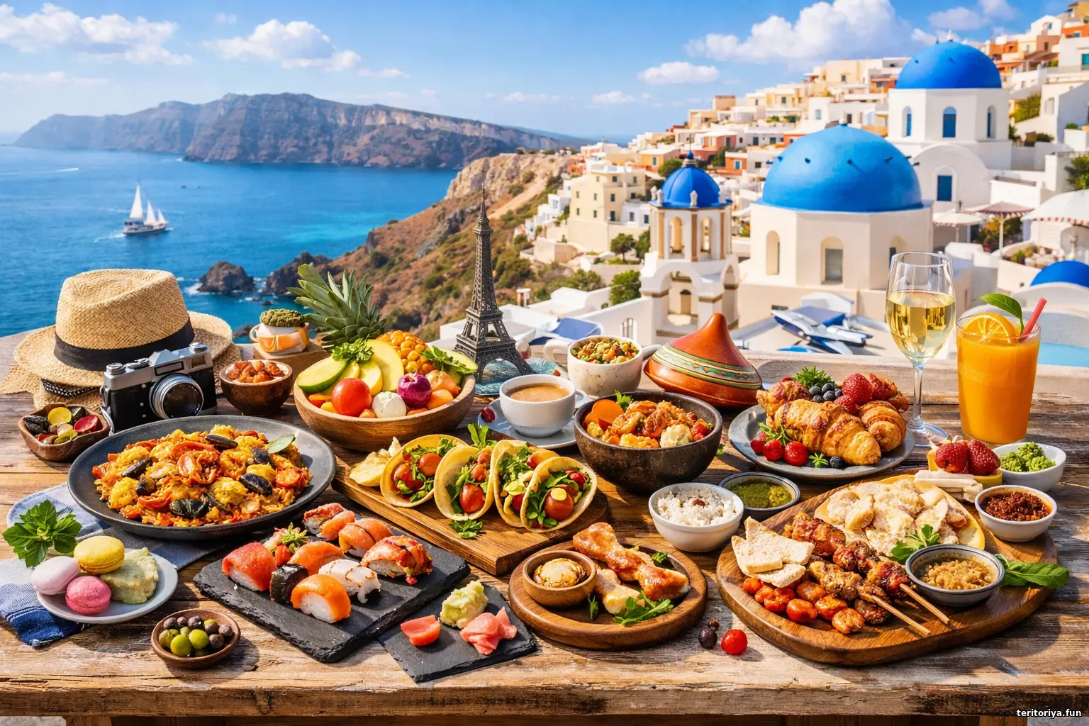 • Смак подорожей (їжа) - Кадр дня Панорамне зображення з різноманітними стравами світу на столі.... 24.02.2026 Яскравий панорамний кадр про гастрономічні подорожі: на тлі сонячного морського узбережжя зібрано різноманітні страви... alex_Is 8 0 5.0