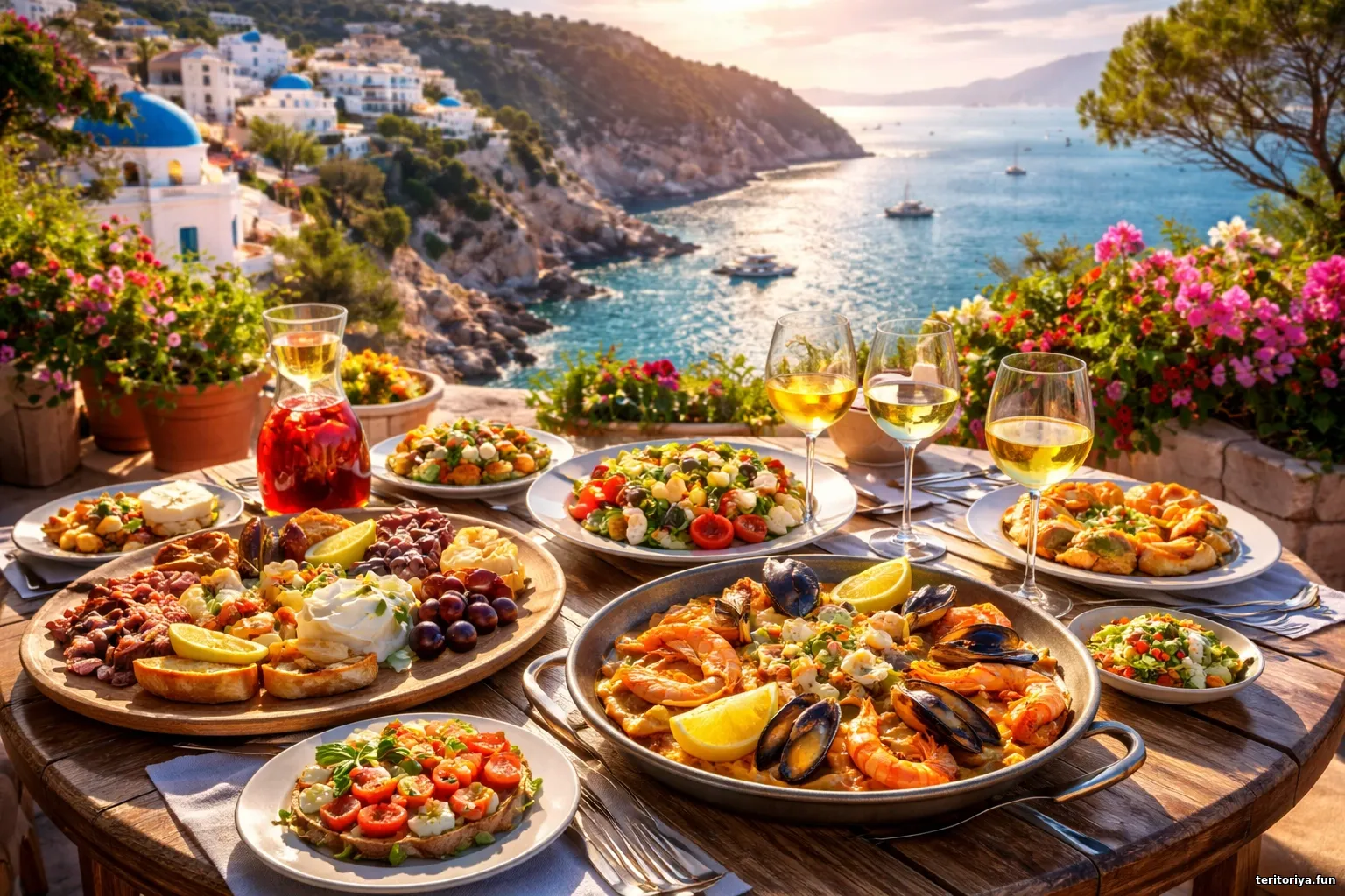 Світла мить подорожі, що збереглася у смаку, кольорах і теплому повітрі над столом. Широкий кадр передає атмосферу неспішного застілля біля моря, де кожна страва виглядає як частина пейзажу. Насичені відтінки, м’яке сонячне світло й реалістична деталізація створюють відчуття присутності, ніби ця сцена досі дихає літом, спокоєм і пам’яттю про місце, куди хочеться повернутися ще раз.
