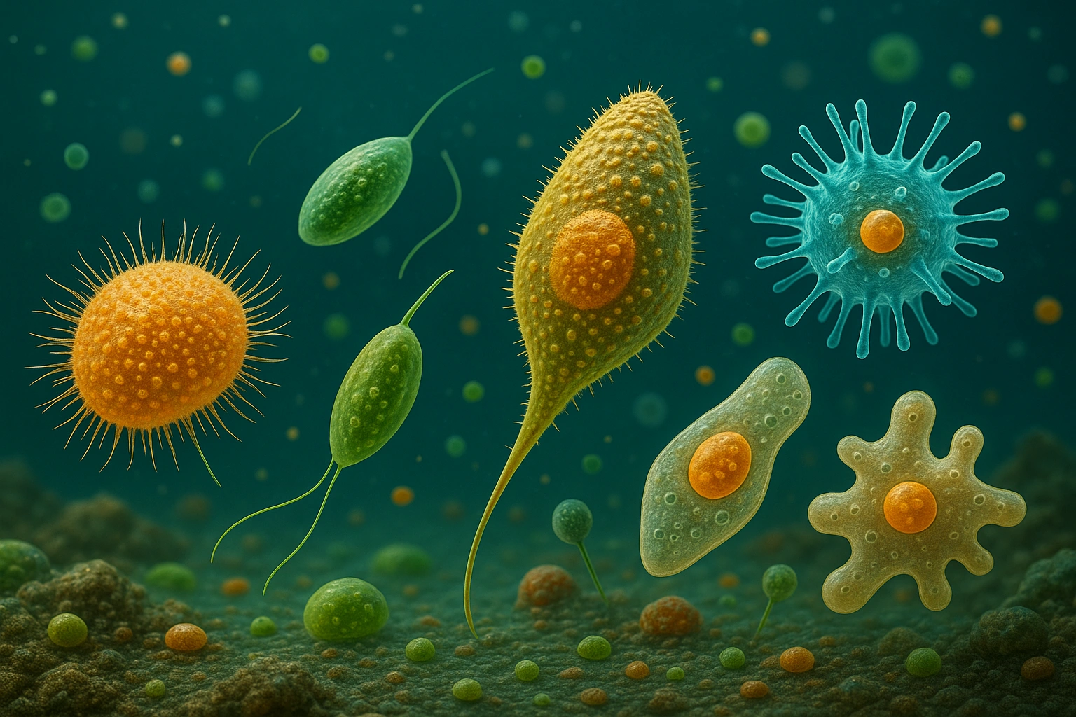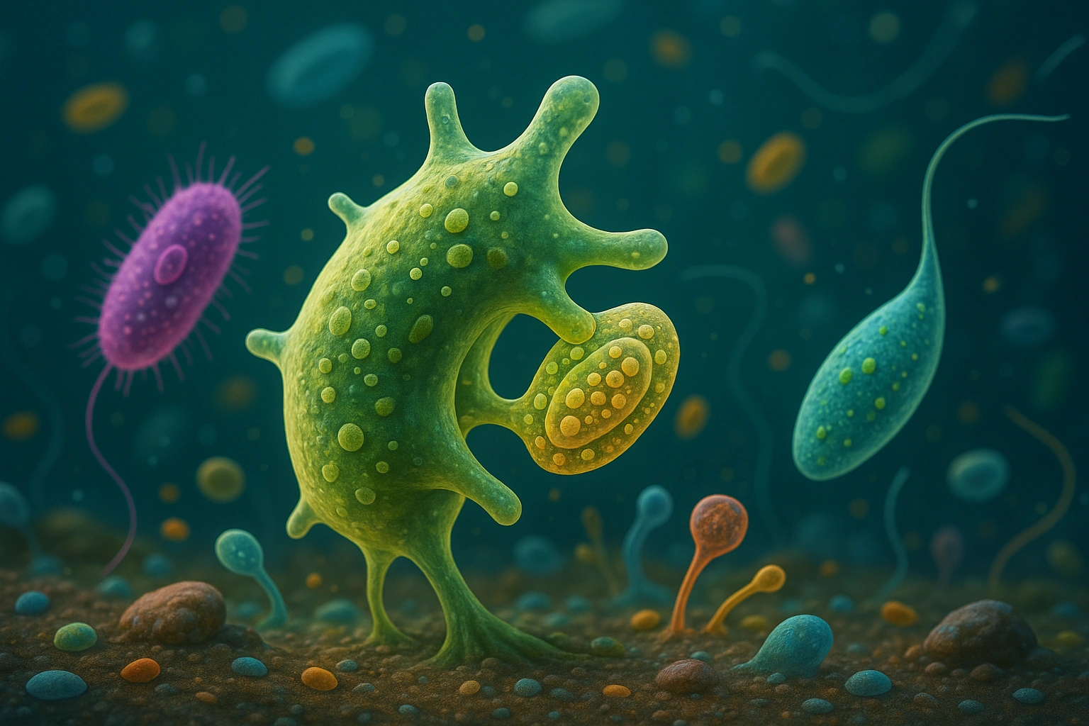 Что такое протозоа?В капле воды из пруда, в капельке слюны, в тонком слое влажной почвы или на поверхности кожи человека — всюду, где есть влага и жизнь, обитают крошечные существа, незаметные глазу. Они не похожи на бактерий, не относятся к животным, но обладают способностью двигаться, питаться, реагировать на раздражители. Это протозоа, или, как их ещё называют, простейшие. Слово «простейшие» не должно вводить в заблуждение: несмотря на свою микроскопичность и относительную структурную простоту, эти организмы — настоящие мастера выживания. Они древние, разнообразные и играют важную роль в экосистемах, медицине и истории биологии. Что же такое протозоа? Как они устроены, где живут, чем питаются, и почему человеку стоит о них знать? Кто такие протозоа?Протозоа (от греч. protos — первый, zoon — животное) — это одноклеточные эукариотические организмы, относящиеся к царству простейших. Они обладают ядром, цитоплазмой, органеллами и, как правило, подвижны. Хотя они состоят всего из одной клетки, она выполняет все жизненные функции: дыхание, питание, движение, размножение, реакцию на внешние раздражители. Раньше протозоа считались частью животного мира, но в современной классификации они выделяются в отдельную группу, поскольку их разнообразие не укладывается в рамки ни животных, ни грибов, ни растений. Некоторые из них ближе к амёбам, другие — к жгутиковым формам, третьи напоминают водоросли. Они — самостоятельная ветвь эволюции, сохранившая особенности древнейших форм жизни. Где обитают протозоа?Простейшие обитают практически везде, где есть влага. Их можно найти: