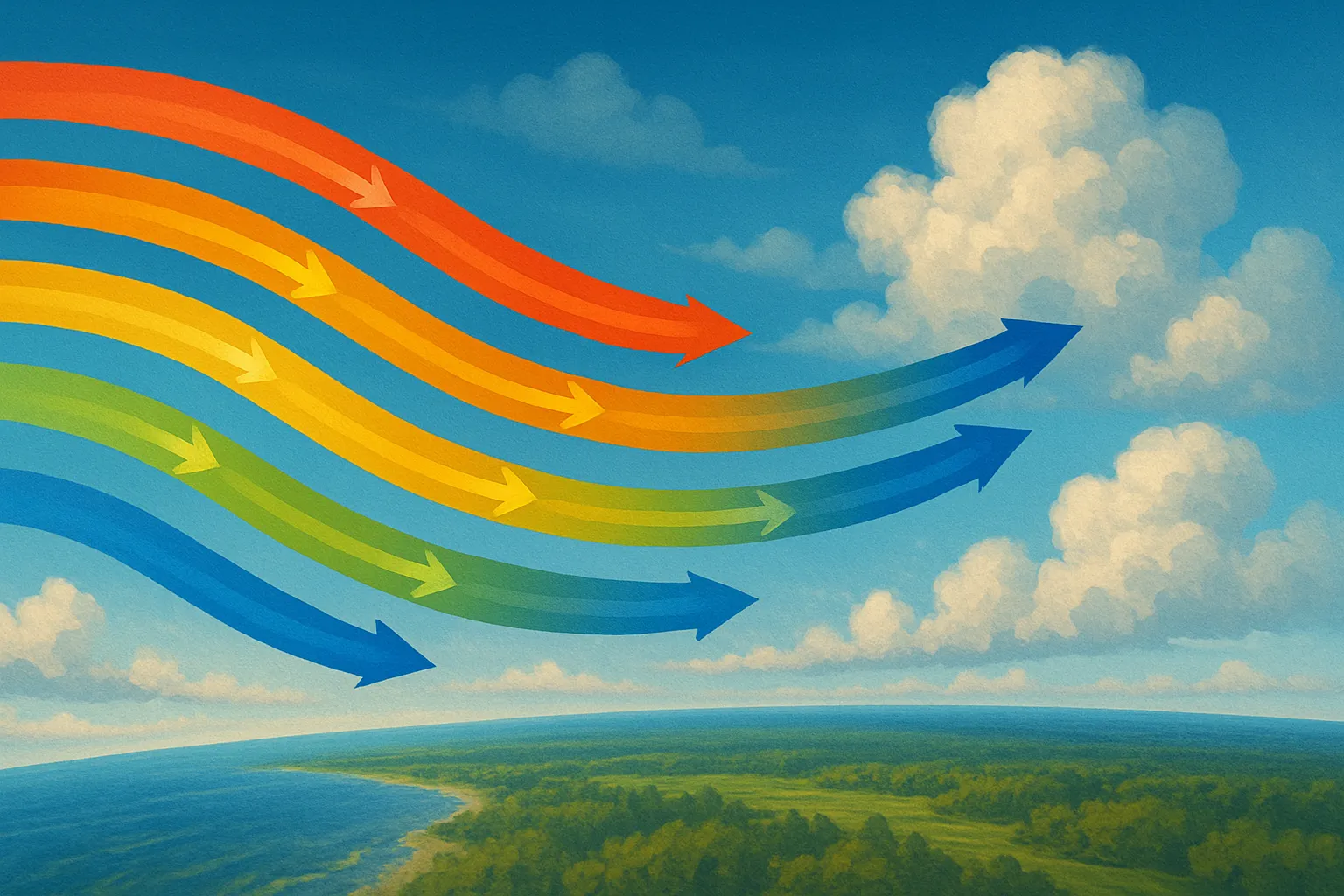 Что такое реактивные потоки?Реактивные потоки — это могучие и стремительные воздушные реки, несущиеся на границах атмосферных слоёв с колоссальной скоростью. Они невидимы глазу, но влияют на погоду, климат, маршруты самолётов и даже судьбу штормов. Эти атмосферные явления — настоящие воздушные шоссе, по которым циркулирует энергия планеты. Что же они собой представляют? Где проходят эти потоки и как они зарождаются? Почему их поведение изучают метеорологи, пилоты и климатологи по всему миру? Реактивные потоки: определение и суть явленияРеактивные потоки (или струйные течения) — это узкие, но очень длинные и быстрые потоки воздуха, движущиеся на больших высотах в верхней тропосфере и нижней стратосфере. Их скорость может достигать и даже превышать 400 км/ч, а длина — простираться на тысячи километров, опоясывая полушария почти по кругу. Слово «реактивный» происходит от английского jet — «струя», «поток», и не связано с реактивной тягой самолётов, хотя именно в авиации эти потоки сыграли важнейшую роль. Они могут быть как помощниками пилотов, ускоряя полёт, так и врагами, создавая сильную турбулентность. Где находятся реактивные потоки?Обычно реактивные потоки формируются на высотах от 9 до 15 километров, в зонах стыка больших воздушных масс с разной температурой. Самые известные и мощные из них расположены: