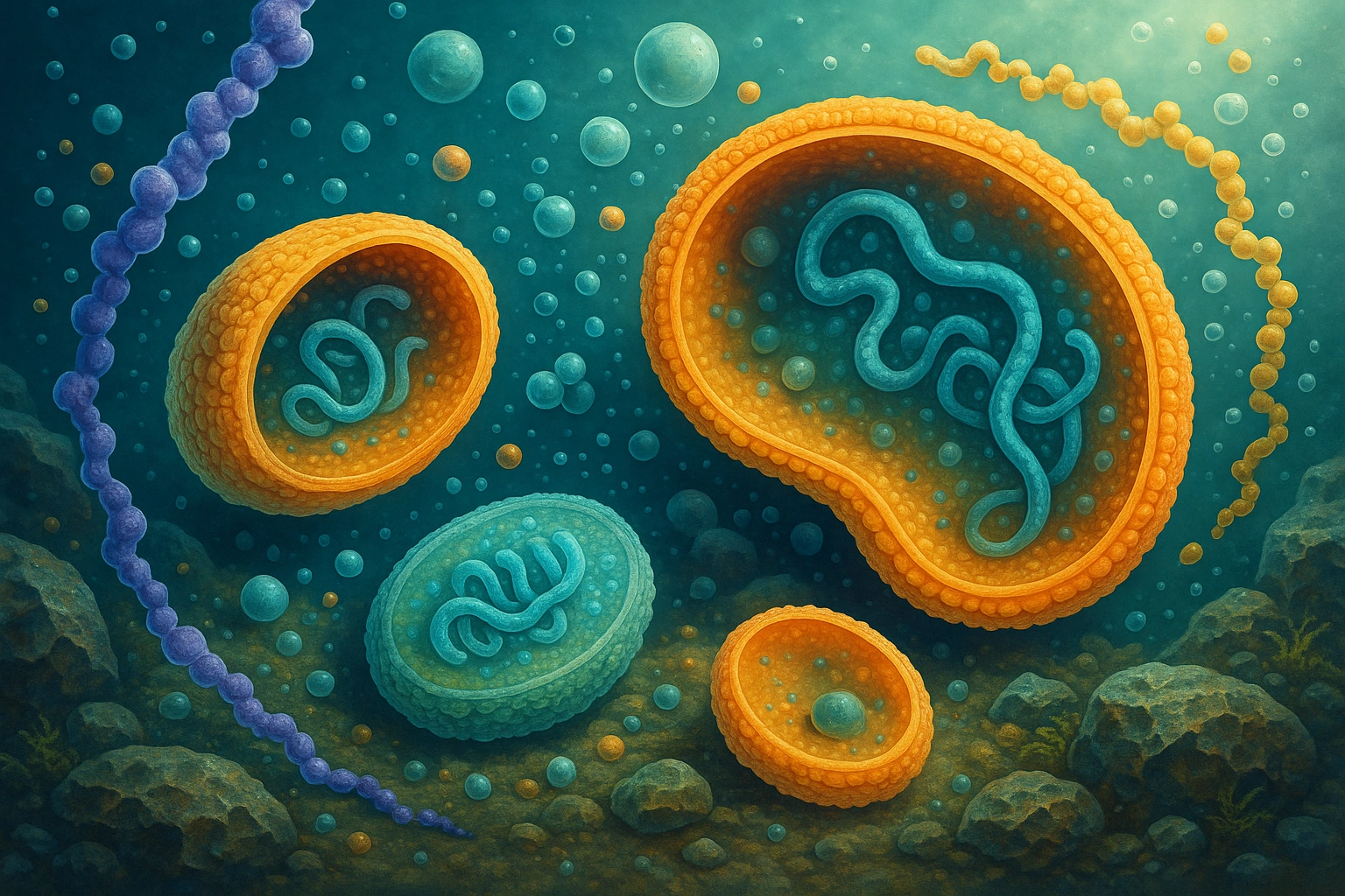Эти организмы жили в горячих источниках, морских глубинах, на поверхности минералов. Они были анаэробами, то есть не нуждались в кислороде — в то время атмосфера его почти не содержала. Революция кислорода: появление фотосинтезаОдна из величайших вех в истории жизни — это появление бактерий, способных к фотосинтезу. Эти бактерии, известные как цианобактерии, возникли около 2,5 миллиардов лет назад. Они научились использовать солнечный свет для преобразования углекислого газа и воды в органические вещества, при этом выделяя кислород. Именно цианобактерии начали окислять атмосферу Земли, постепенно насыщая её кислородом. Этот процесс получил название кислородной катастрофы — он стал смертельным для многих анаэробных форм, но открыл путь для появления кислородного дыхания и, в конечном итоге, многоклеточной жизни. Бактерии и эволюция сложных организмовБактерии не просто пережили миллиарды лет истории Земли — они стали фундаментом эволюции. Существует теория, согласно которой митохондрии (энергетические станции в клетках животных) и пластиды (у растений) произошли от свободноживущих бактерий, которые однажды были «поглощены» другими клетками. Этот процесс называется эндосимбиоз. Таким образом, все растения, животные и человек — в определённом смысле потомки бактерий. Их древние способности были встроены в наши клетки и до сих пор обеспечивают жизнь. Почему бактерии — мастера выживания?Бактерии продолжают существовать в самых невероятных условиях. Они: