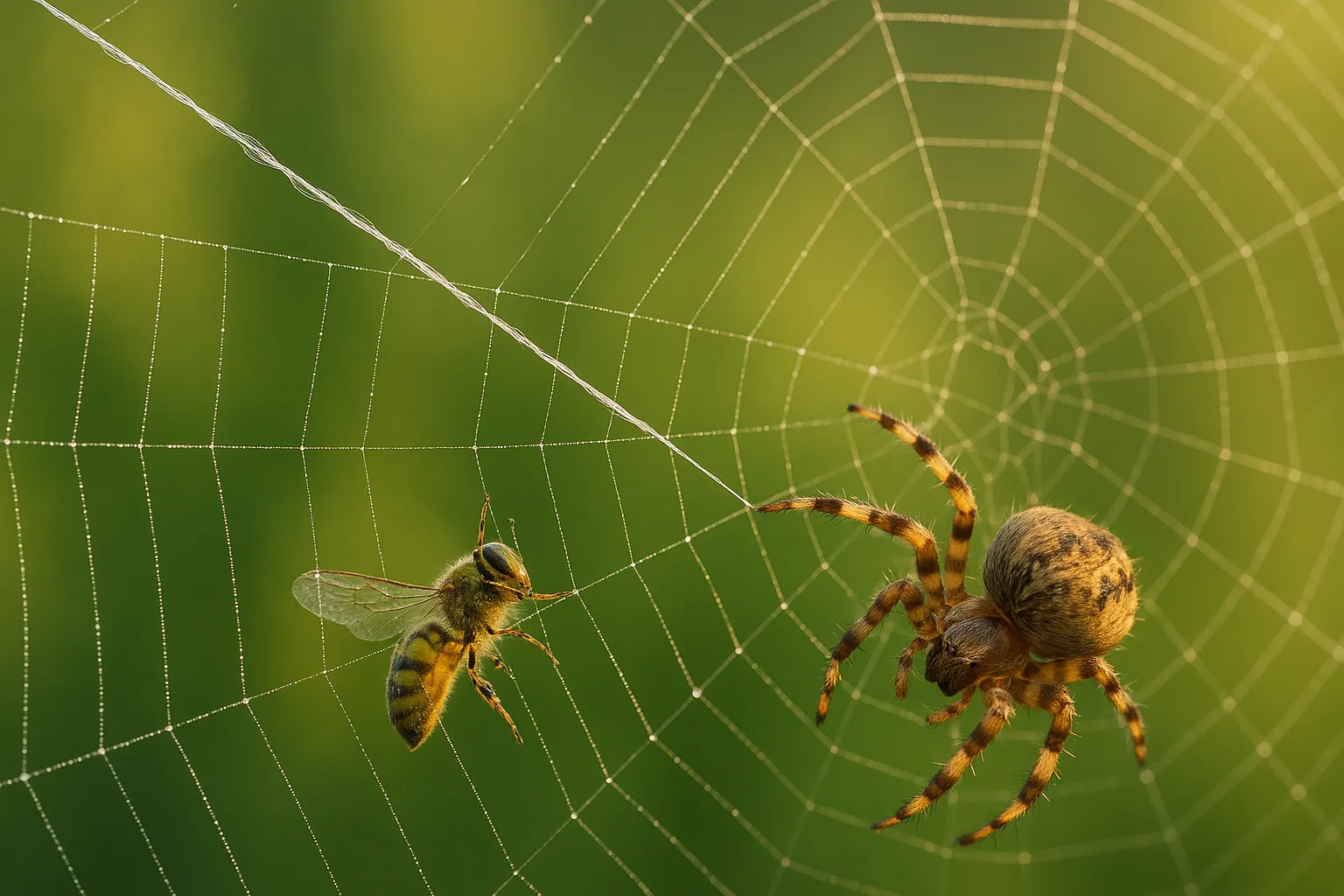 Из чего сделана паутина?На заре, когда солнечные лучи только-только проникают сквозь листву и освещают влажные поляны, в воздухе начинает мерцать нечто почти невидимое. Между травинками, между ветками, между каплями тумана возникает тонкая, изящная, кружевная структура — паутина. Она одновременно хрупка и сильна, воздушна и смертельно опасна для тех, кто попадёт в неё. Удивительно, но создаёт её маленькое существо — паук, не имеющий ни рук, ни ткацкого станка, ни чертежей. Всё, что он делает, — он делает своим телом, инстинктом и древним знанием, вписанным в его природу. Но что же такое паутина на самом деле? Из чего она сделана? Почему она прочная, как нить стали, и в то же время тонкая, как дыхание? Ответ кроется в сложной биохимии, в микроархитектуре и в тысячелетней эволюции, превратившей паутину в одно из величайших изобретений природы. Что такое паутина с точки зрения науки?Паутина — это не просто «нитка» или «пряжа». Это сложное белковое волокно, которое вырабатывается самим организмом паука. По сути, паутина — это биологический шёлк, но в отличие от шелка, создаваемого тутовым шелкопрядом, он намного прочнее, эластичнее и сложнее по составу. Пауки производят паутину с помощью паутинных желез, расположенных в задней части тела — на брюшке. Эти железы, каждая со своей функцией, соединяются с множеством микроскопических паутинных бородавок, через которые жидкий белок выходит наружу и мгновенно твердеет при соприкосновении с воздухом, превращаясь в нить. Эта нить не просто тянется — она модулируется, комбинируется, упорядочивается в зависимости от нужд паука: строительства, охоты, защиты, перемещения. Состав паутины: что в её основе?Основным компонентом паутины являются белки, называемые спидроины (от английского spider + fibroin — волокно). Эти белки состоят из цепочек аминокислот, которые формируют упорядоченные и неупорядоченные участки, создавая идеальный баланс между прочностью и растяжимостью. Что входит в состав паутины: