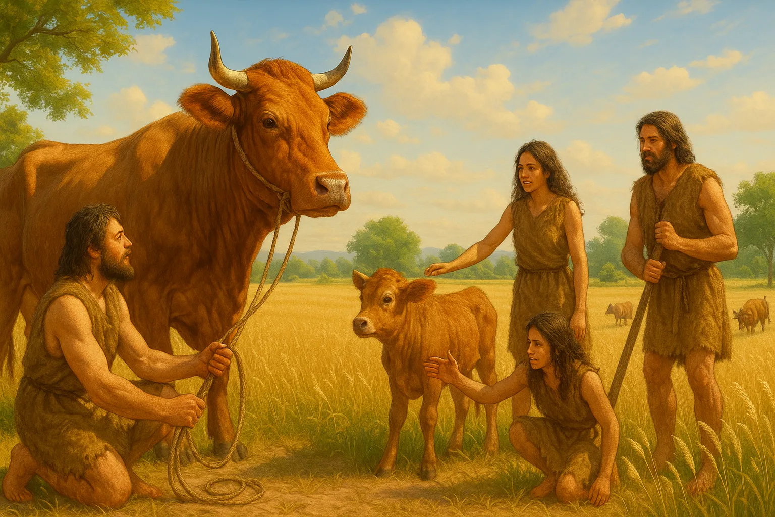 Когда была одомашнена корова?Тихое мычание на пастбище, парное молоко в кувшине, тёплое дыхание в деревенском хлеву, звон колокольчика на шее — корова давно стала неотъемлемой частью человеческого быта, символом сельской жизни, источником пищи, одежды и даже духовной силы в культурах разных народов. Мы привыкли к ней как к чему-то само собой разумеющемуся, но когда-то это было дикое, сильное и норовистое животное, обитавшее в глубинах лесов и степей. Когда же человек впервые приручил корову? Как прошёл этот путь от дикого быка до домашней бурёнки? Что за этим стояло — случайность, необходимость или тонкий расчёт? В этой статье мы заглянем в далёкое прошлое, к истокам скотоводства, чтобы проследить судьбу одного из самых важных домашних животных в истории человечества. Дикий предок: кто он?Современная корова произошла от мощного дикого быка — тура (Bos primigenius), населявшего леса, степи и равнины Европы, Азии и Северной Африки. Тур был впечатляющим существом: высокий, с длинными изогнутыми рогами, агрессивный, быстрый и крайне осторожный. Вес взрослого самца мог достигать полутора тонн, а в холке он возвышался над человеком. Эти животные не только выживали в суровых условиях, но и представляли серьёзную угрозу для охотников. Неудивительно, что их изображения можно найти в наскальных рисунках: туры — частые герои палеолитического искусства, таких как знаменитые фрески в пещере Ласко во Франции. Но как же человек отважился приблизиться к дикому быку, не чтобы убить, а чтобы… одомашнить? Первые шаги: где и когда?Согласно археологическим и генетическим данным, одомашнивание коровы произошло около 10 000 лет назад, в эпоху неолита, то есть в период, когда человек начал переход от охоты и собирательства к земледелию и скотоводству. Произошло это на территории Плодородного Полумесяца — региона, охватывающего современные Турцию, Сирию, Ирак и Иран. Здесь, в долинах рек Тигр и Евфрат, на стыке пустынь и гор, человек впервые стал заниматься целенаправленным разведением животных, включая овец, коз, свиней и, позднее, — быков и коров. Исследования ДНК показывают, что все современные домашние коровы произошли от ограниченного количества самок тура — вероятно, не более 80 животных. Это указывает на то, что одомашнивание было не массовым, а локализованным событием, после чего уже одомашненные животные распространились по другим регионам. Две главные линии: зебу и тауриныОдомашненные коровы делятся на две основные линии: