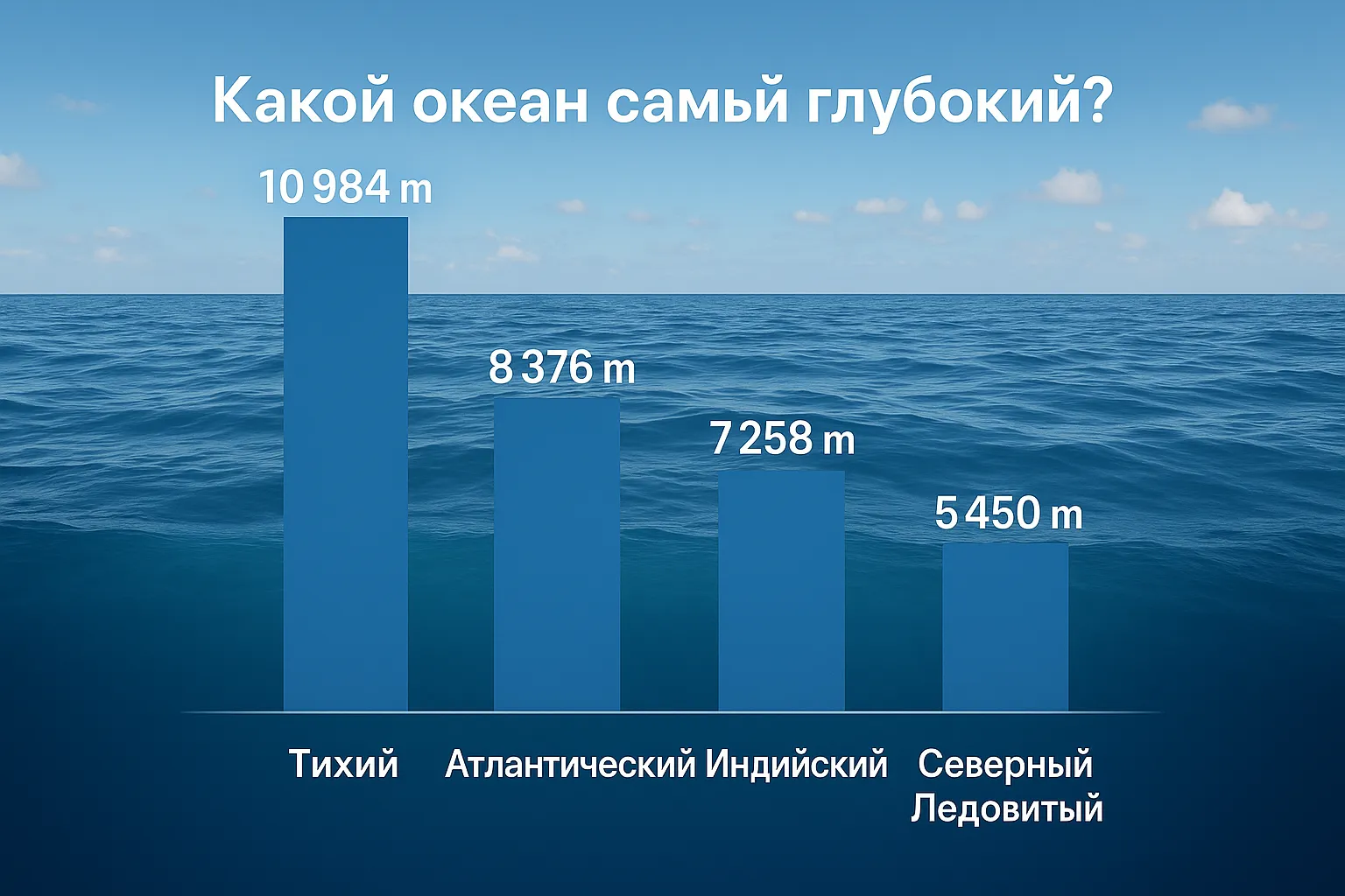 Какой океан самый глубокий?Океаны покрывают большую часть поверхности нашей планеты, скрывая под своими волнами бескрайние просторы, загадочные течения, неведомые глубины. Они влияют на климат, формируют погоду, питают жизнь и хранят тайны, многие из которых до сих пор остаются неразгаданными. Среди всех океанов мира один занимает особое место: он не только велик, но и поражает своими непостижимыми глубинами. Какой океан является самым глубоким на Земле? Почему он таков? И какие тайны скрыты в его мрачных безднах? Океаны Земли: общее представлениеНа планете существует пять официально признанных океанов: Тихий, Атлантический, Индийский, Южный и Северный Ледовитый. Они различаются по площади, объему воды, температуре, солёности, но одно из главных различий — это глубина. Глубина океана определяется расстоянием от его поверхности до самого глубокого места на дне. Измерение глубин — непростая задача. Современные технологии, такие как эхолокация, гидролокаторы, батиметрические спутники и глубоководные аппараты, позволяют всё точнее картировать морское дно. Самый глубокий океан: Тихий океанБезусловным рекордсменом по глубине является Тихий океан. Тихий океан — крупнейший и глубочайший океан на Земле. Его площадь составляет около 168 миллионов квадратных километров, что больше площади всей суши планеты, а средняя глубина — около 4280 метров. Но главное — именно в Тихом океане находится самая глубокая точка Мирового океана — знаменитая Марианская впадина. Марианская впадина: край ЗемлиМарианская впадина расположена в западной части Тихого океана, к востоку от Марианских островов. Она представляет собой гигантский подводный желоб длиной около 2500 километров и шириной до 70 километров. Самая глубокая точка Марианской впадины носит название Бездна Челленджера. По современным измерениям её глубина составляет около 10 984 метров, хотя в разных экспедициях цифра варьировалась от 10 902 до 11 034 метров в зависимости от методов измерения. Для сравнения: если бы Эверест оказался на дне Бездны Челленджера, его вершина всё равно находилась бы более чем на полтора километра ниже уровня моря. Как измеряют глубину океана?Измерение глубины океана — сложная и точная наука. Самыми распространёнными методами являются: