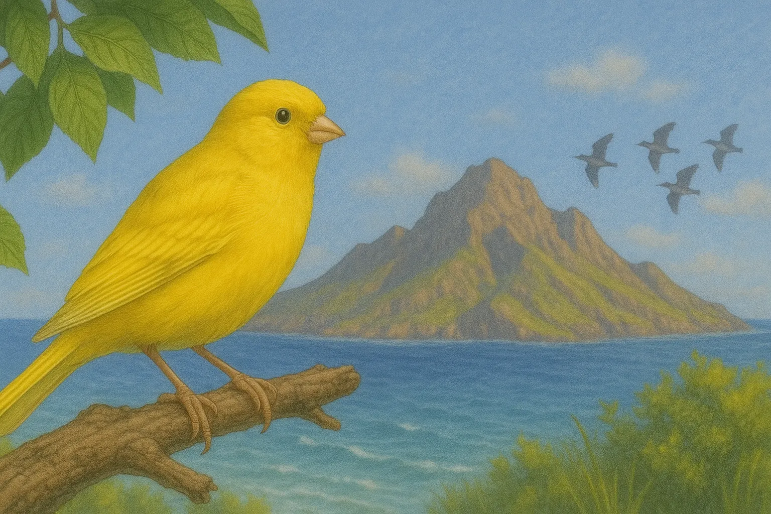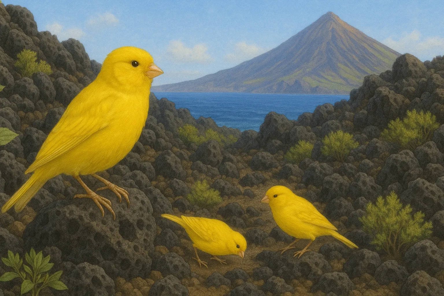 Именно здесь, среди лавовых склонов, субтропических лесов, ароматных кустарников и скалистых обрывов, обитает Serinus canaria — дикая канарейка, от которой и произошли все современные породы домашних канареек. Происхождение названия: почему "канарейка"?Многие полагают, что птица получила имя в честь островов. Однако исторически всё было наоборот: название "Канарские острова" появилось раньше, чем птицу стали называть канарейкой. Слово "Канарские" происходит от латинского Canariae Insulae, что означает «собачьи острова». Согласно римским хроникам, на этих островах обитало множество крупных собак (возможно, морских львов, которых ошибочно приняли за собак), и именно в честь них был назван архипелаг. Позже, когда испанские моряки открыли и описали местных певчих птиц, их стали называть "птичками с Канарских островов", а затем просто — канарейками. Открытие и завоевание: как канарейки попали в ЕвропуКанарские острова были известны ещё финикийцам и римлянам, но европейская колонизация началась в XV веке с португальцев и испанцев. Именно испанские завоеватели в 1402 году начали систематическое освоение архипелага. Во время своих экспедиций они обратили внимание на маленьких жёлто-зелёных птиц с поразительным голосом. Эти птицы обитали в лесах, садах, кустарниках, питались семенами и ягодами, пели громко и чисто. Их красота и музыкальность поразили европейцев, и вскоре первых особей начали вывозить на континент. Изначально канарейки были диковинкой при испанском дворе, а затем стали появляться в Италии, Франции, Германии. В XV–XVI веках они были редкостью, и только богатые аристократы могли позволить себе такую живую драгоценность. Распространение по Европе: от элиты к народуПоначалу испанцы ревниво охраняли монополию на разведение канареек. Они продавали только самцов, поскольку именно они поют, а самок — не отпускали, чтобы никто не мог разводить этих птиц самостоятельно. Однако, как это часто бывает, контрабанда и случайности разрушили монополию. Однажды партия птиц попала в руки итальянских монахов, которые начали разводить их в монастырях. Постепенно разведение канареек распространилось по всей Европе. К XVII веку канарейка стала одной из самых популярных домашних птиц. Её разводили не только ради пения, но и как символ статуса, эстетического вкуса и утончённости. Впоследствии особую славу получили немецкие селекционеры, особенно из Тюрингии и Саксонии. Именно они создали первые породы канареек с различным оперением и мелодическим строем пения. Природные условия родины канарейкиКанарские острова отличаются удивительным климатом: мягкие зимы, тёплое лето, регулярные пассаты, обилие солнечного света и разнообразие флоры. Эти условия сформировали сбалансированную экосистему, в которой канарейка заняла устойчивую нишу: