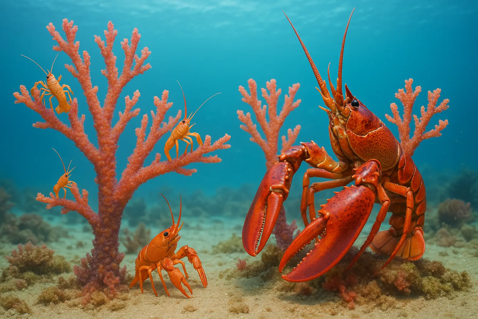 Как растут омары?В глубинах морей и на скалистых участках континентального шельфа, среди водорослей, песчаных отмелей и подводных укрытий, обитает один из самых загадочных и в то же время хорошо известных жителям прибрежных стран представителей морской фауны — омар. Его ещё называют морским раком, европейским лобстером или настоящим лобстером (Homarus gammarus в Атлантике и Homarus americanus в Северной Америке). Эти создания привлекают внимание не только своими внушительными клешнями и крепким панцирем, но и необычным жизненным циклом, который включает множественные линьки, поразительную трансформацию тела и многолетний рост. Как же растёт омар? Как он появляется на свет, как развивается в течение жизни, и почему его рост — это постоянная борьба за выживание? Эта статья подробно расскажет о развитии омаров: от крошечной личинки до могучего взрослого хищника, в чьих клешнях скрыта сила и точность, выработанные годами постоянного изменения и обновления. Кто такие омары?Омары — это крупные морские ракообразные из отряда десятиногих. У них вытянутое тело, массивные клешни, сегментированный панцирь и длинные усики. Они живут в прохладных водах Атлантики, обитают на глубине от нескольких до сотен метров, предпочитая укромные места — расщелины скал, подводные ниши, песчаные углубления. Омар — ночной хищник. Он питается моллюсками, червями, падалью и даже мелкой рыбой. В своей среде он играет важную роль санитара дна и одновременно выступает в роли звена в пищевой цепи, становясь добычей более крупных морских хищников. Омары известны своей долгожительностью: в дикой природе они могут прожить до 50 и более лет. Однако этот возраст даётся им непросто — каждый год, особенно в молодости, они проходят через сложную и рискованную процедуру — линьку. Жизнь начинается в толще водыРост омара начинается с рождения — точнее, с выхода из икринок. Самки омаров вынашивают оплодотворённую икру под своим хвостом от 9 до 12 месяцев, в зависимости от температуры воды. Икринки крепятся к специальным ворсинкам на брюшных конечностях и получают кислород из окружающей воды. Когда наступает время, из икринок выходят личинки, которые сразу же попадают в толщу воды. Этот этап называется планктонным: личинки свободно дрейфуют в верхних слоях моря и становятся частью планктона. В течение первых двух-трёх недель они проходят несколько стадий линьки, меняя форму тела и постепенно приобретая очертания взрослого омара. На этом этапе смертность чрезвычайно высока. Огромное количество личинок становится добычей хищников или гибнет из-за нестабильных условий. Лишь единицы из тысяч достигают следующей стадии — опускания на дно. Метаморфоз: путь ко днуПосле третьей или четвёртой линьки молодые омары начинают опускаться на дно и переходят к донному образу жизни. Они становятся миниатюрными копиями взрослых особей, но сохраняют ещё полупрозрачный панцирь и высокую уязвимость. На этом этапе начинается настоящая борьба за территорию, пищу и укрытие. Молодые омары прячутся в песке, под камнями, в расщелинах, и ведут скрытный образ жизни. Именно здесь они начинают расти интенсивно — но рост омара невозможен без сбрасывания старого панциря. Линька — главный механизм ростаОдин из ключевых аспектов роста омара — это экдизис, или линька. В отличие от позвоночных животных, омар 