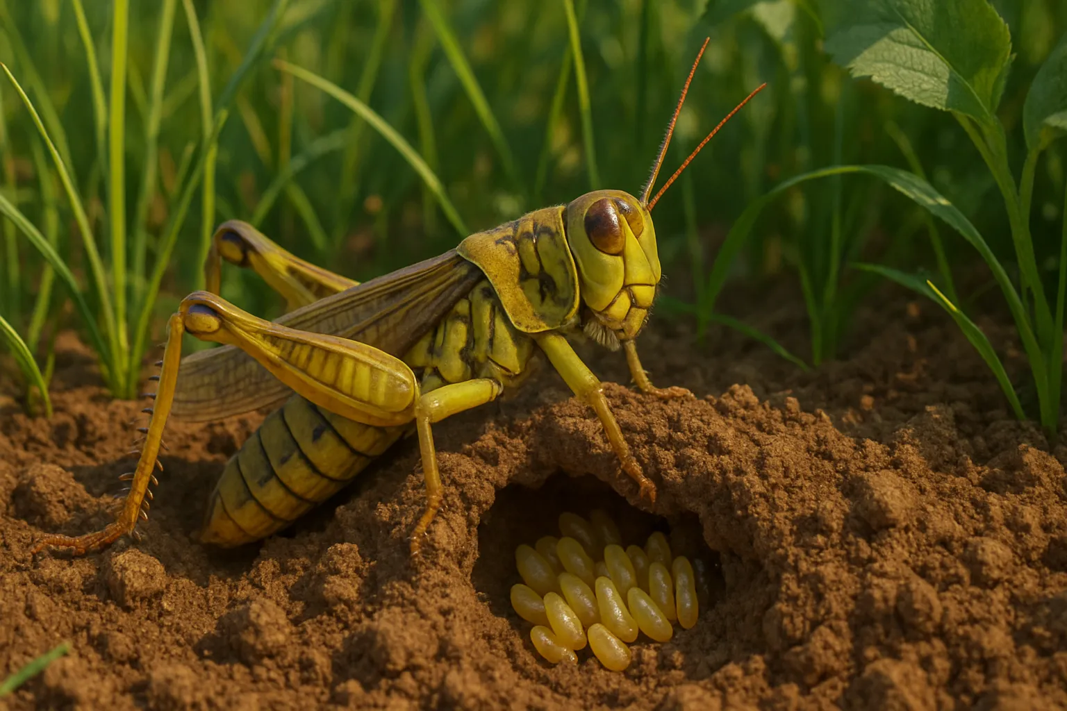 Куда кузнечики откладывают свои яйца?Летом, когда солнце прогревает траву до самого корня, с лугов и полей доносится тихая, но упорная песня — стрекот кузнечика. Эти маленькие музыканты с тонкими, мощными задними ногами и чувствительными усиками кажутся воплощением летней свободы. Они прыгают с травинки на травинку, прячутся в зелени, поют свои стрекотания на закате. Но за этой поэтичной картиной скрывается один из самых важных моментов в их жизни — воспроизведение потомства. Куда же деваются кузнечики, когда их стрекот замирает с наступлением осени? И самое главное — куда они откладывают свои яйца, чтобы следующей весной на свет появились новые прыгающие музыканты? Ответ на этот вопрос открывает целый пласт удивительных знаний о повадках, анатомии и стратегии выживания этих насекомых. Кузнечик: кто он такой?Прежде чем понять, куда и как кузнечики откладывают яйца, важно разобраться, кто они такие. Кузнечики относятся к отряду прямокрылых насекомых, в который также входят саранча и кобылки. Это растительноядные или всеядные существа с характерной вытянутой формой тела, длинными усиками, сильными задними ногами, приспособленными для прыжков, и хорошо развитыми органами слуха. Именно кузнечики — одни из немногих насекомых, у которых есть голос. Стрекотание создаётся трением задних ног о надкрылья или трением двух крыльев друг о друга. Поёт, как правило, самец, призывая самку для спаривания. Период размноженияВ тёплое время года, когда условия наиболее благоприятны, кузнечики вступают в брачный сезон. Это может происходить в середине лета или ближе к осени, в зависимости от климата региона и конкретного вида. После того как самец и самка нашли друг друга, происходит спаривание, в ходе которого самец передаёт самке сперматофор — капсулу со сперматозоидами. Это событие запускает следующий и важнейший этап — откладку яиц. Где кузнечики откладывают яйца?Вот мы и подошли к главному вопросу. Кузнечики откладывают яйца в землю, выбирая для этого рыхлый, мягкий, влажный, но не слишком сырой слой почвы, чаще всего в травянистых местах, где потомство будет обеспечено кормом. Основные особенности выбора места: