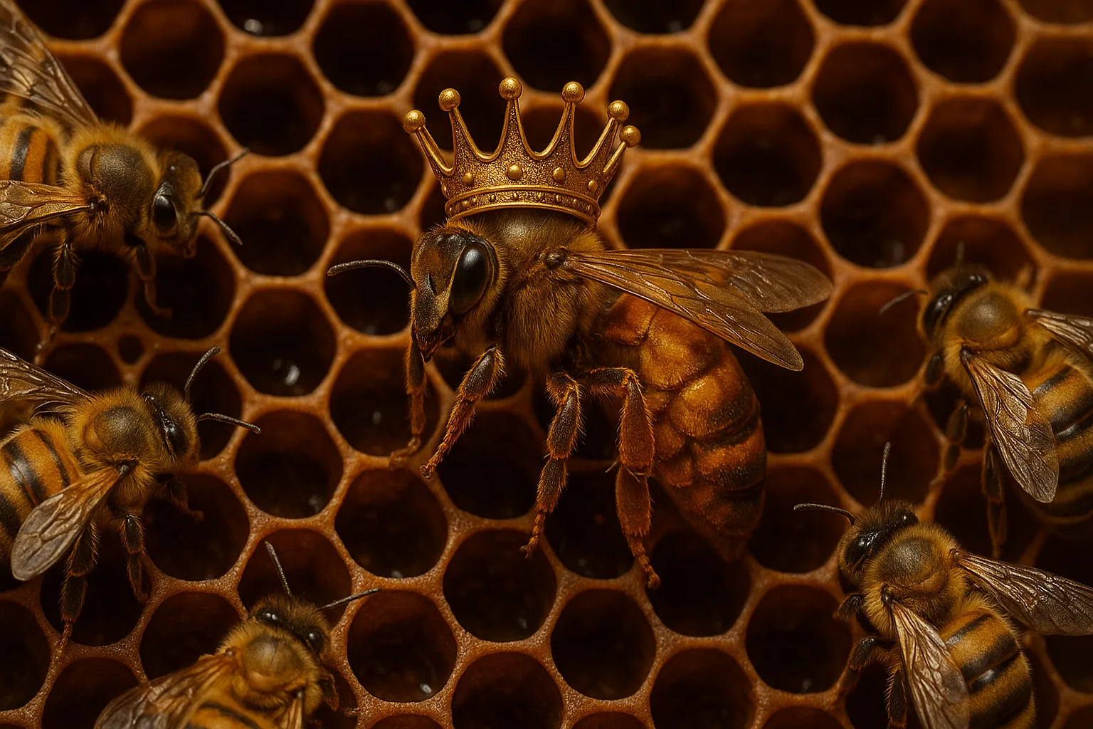 Почему пчела-царица становится «царицей»?В самом сердце улья, где темно, тепло и пахнет воском, живёт она — матка, или, как её ещё называют, пчела-царица. Вокруг неё вьются сотни служанок, кормят, ухаживают, оберегают. Её тело крупнее, движения величественны, а главная задача — продолжать жизнь семьи. Но как среди тысяч крошечных, внешне одинаковых личинок рождается одна — «особенная»? Почему именно она становится единственной способной к размножению особью в улье? Кто и как решает её судьбу? Пчела-царица не наследует свой трон и не получает его по праву рождения. Её «величество» — не дар свыше, а результат сложного биологического, поведенческого и химического выбора. За её появлением скрыт удивительный механизм, соединяющий природу, инстинкты и коллективную волю улья. Эта статья — о том, как и почему пчела становится царицей. О загадке выбора, о превращении, о силе меда, маточного молочка и воли пчелиного сообщества. Что такое пчелиная матка?Прежде всего, давайте определим: пчела-царица, или матка, — это единственная полноценно развитая самка в улье, способная к спариванию и откладыванию яиц. Все остальные пчёлы в семье — либо рабочие пчёлы (также самки, но бесплодные), либо трутни (самцы, рождающиеся для одной цели — оплодотворить матку). Матка живёт дольше всех — до 5 лет. В её организме производятся тысячи яиц в сутки, и от её здоровья зависит всё будущее семьи. Но сама она не «властвует» в привычном смысле. Она не приказывает и не управляет. Её власть — биологическая и химическая. Она — живой центр улья, гормональный и поведенческий якорь для сотен и тысяч других пчёл. Все личинки одинаковы — но не судьбыНа ранней стадии развития все пчелиные личинки абсолютно идентичны. Они вылупляются из яиц, отложенных маткой, и получают питание от рабочих пчёл. И именно питание определяет, кем личинка станет. Секрет маточного молочкаКлюч к судьбе личинки — особый корм, который выделяют специальные железы рабочих пчёл. Этот корм называют маточным молочком. Все личинки получают его в первые дни жизни. Но: